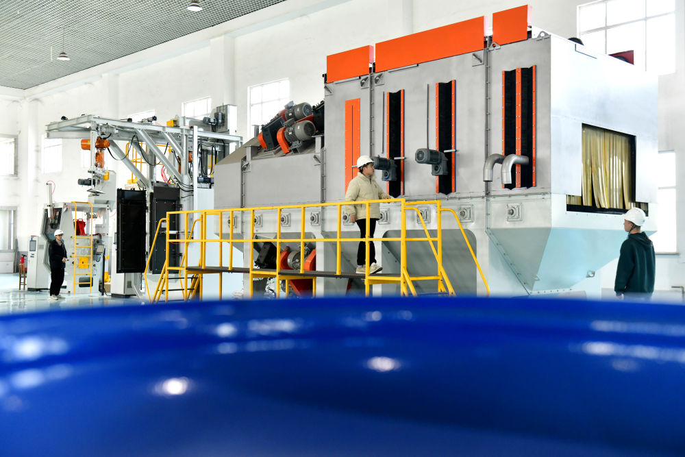 2025年3月17日,正在山东开泰集团智能抛喷手艺研究院,工做人员正在调试机械设备。记者 郭绪雷 摄。