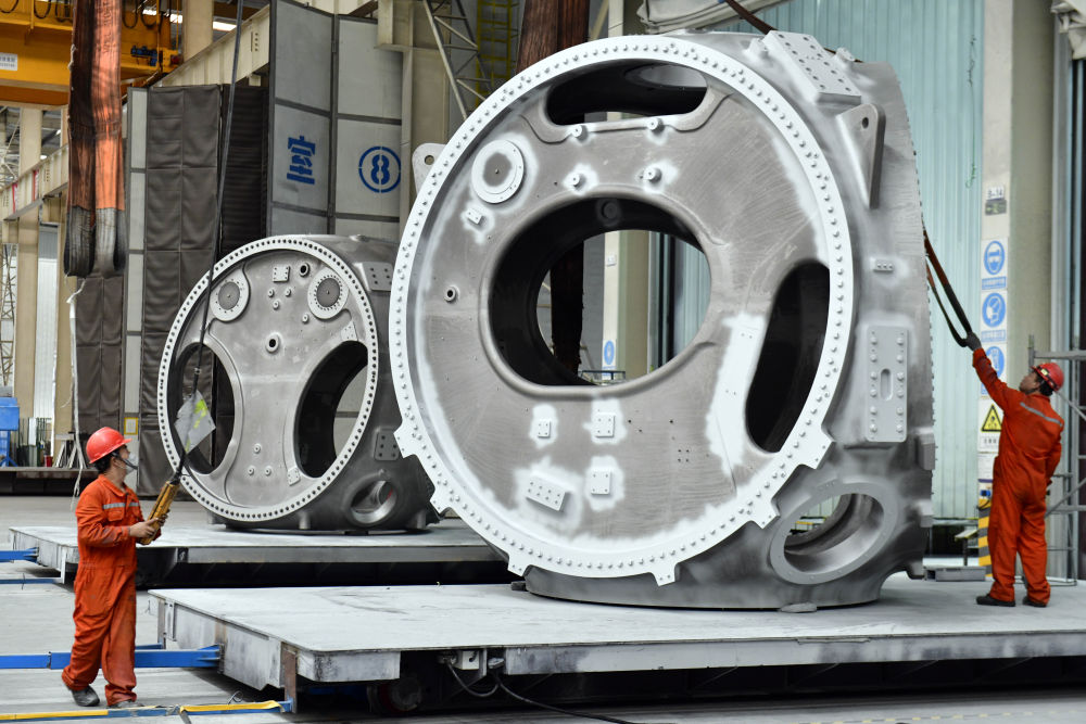铸件最大单沉约160吨、一片风机叶片长达100多米、一个轮毂曲径约5米走进山东国创细密机械无限公司,各类大型风电配备琳琅满目。目前这家企业风电铸件国内市场拥有率正在30%以上。